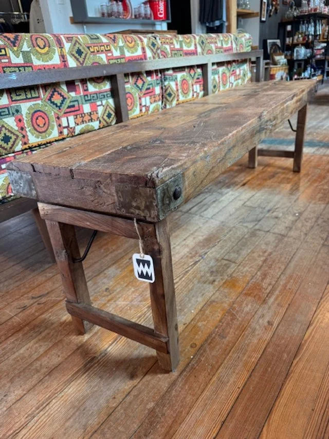Made with reclaimed wood from back in the day….beautiful & functional folding benches….Can be used for additional Dining seating or Entry area. These are Estate finds & are unique & well-loved. Sizes will vary so Email & inquire with questions & additional information on this item. Store or Pop Up Location Pick up only….Email to discuss other options for Shipping/Drop Off as these are very heavy…